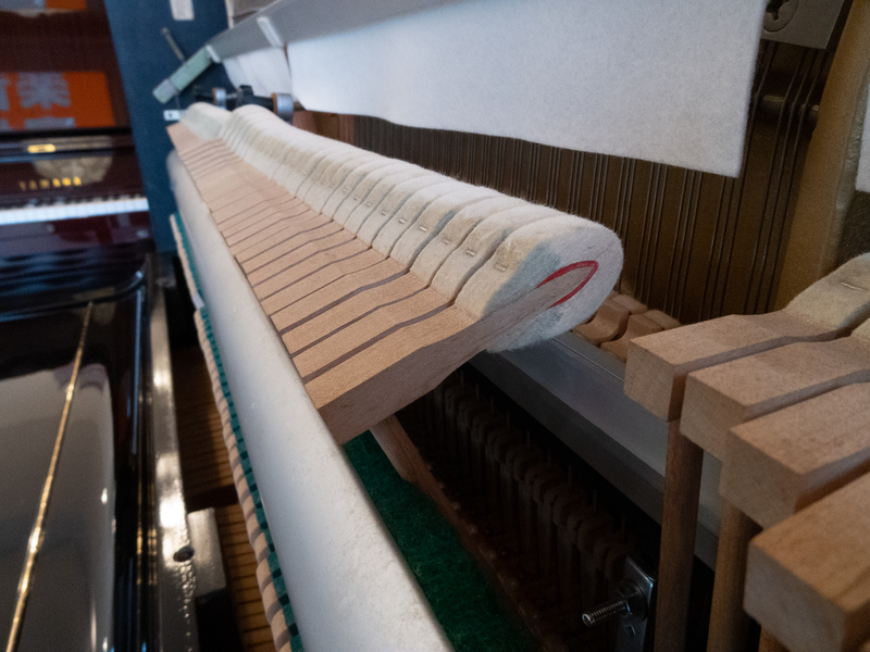 内装・外装ともクリーニング済みで、内部の弦やピンやなどもサビ・汚れを落としています。 ハンマーの調整、整調(鍵盤の高さと深さの調整。タッチのバランス。ダンパーの調整等)済み。