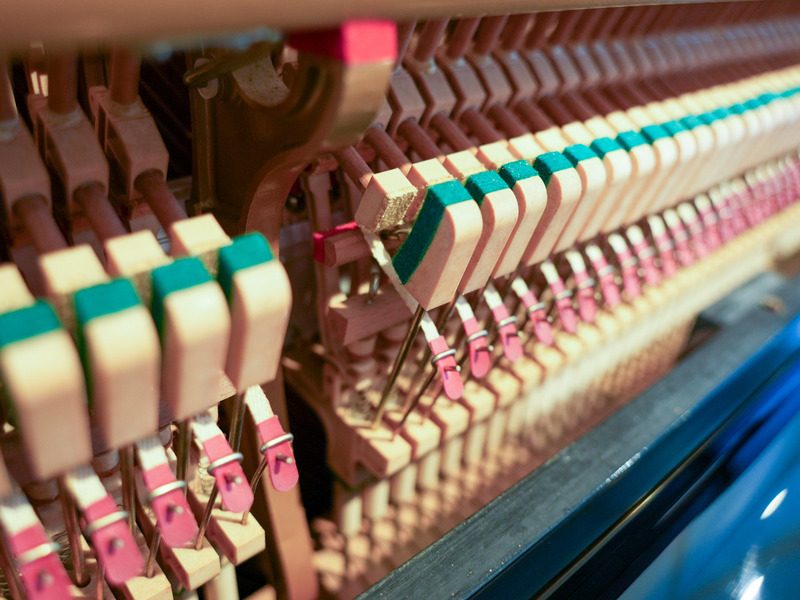 外装にすりキズ・打ちキズがいくつかありましたが、修復していますが、よーく見るとわかるレベルです。 内部も調整済みで良好な状態にしています。ハンマーのファイリング・調整・ねじれ・遊びの調整、ダンパー調整、レットオフ調整等ピアノ整調をすべて行っております。 マフラーフェルトは新品に貼り替え、弦やチューニングピン、鍵盤のバランスピン・フロントピンも汚れやサビを落として磨きました。