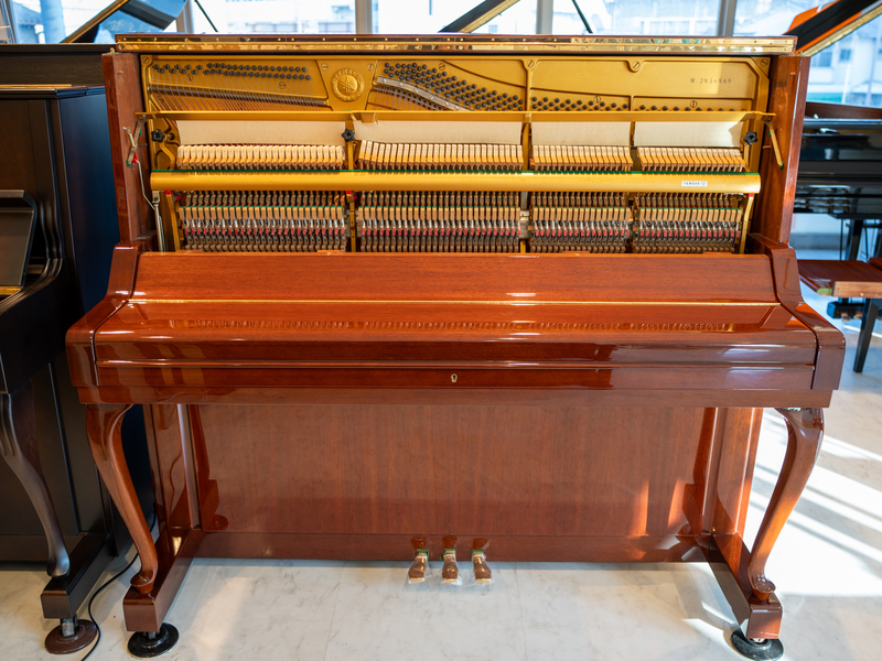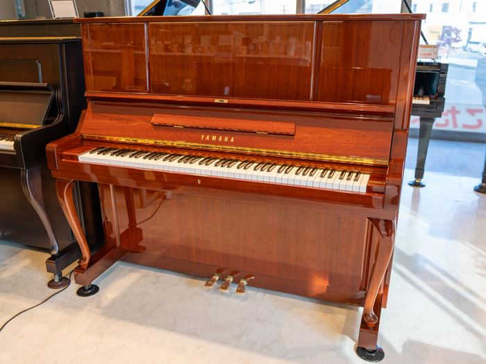 ヤマハの上級モデルで木目が美しいインテリア性が高いピアノ。ヨーロッパの家具のような深い色調が印象的なピアノです。脚には、曲線が美しい猫脚を採用。マホガニーの外装と相まって優美さが引き立っています。響きを決定づけるハンマーにはオールアンダーフェルト入りのハンマーを搭載。トーンエスケープにより音抜けも良く、響きも豊かです。