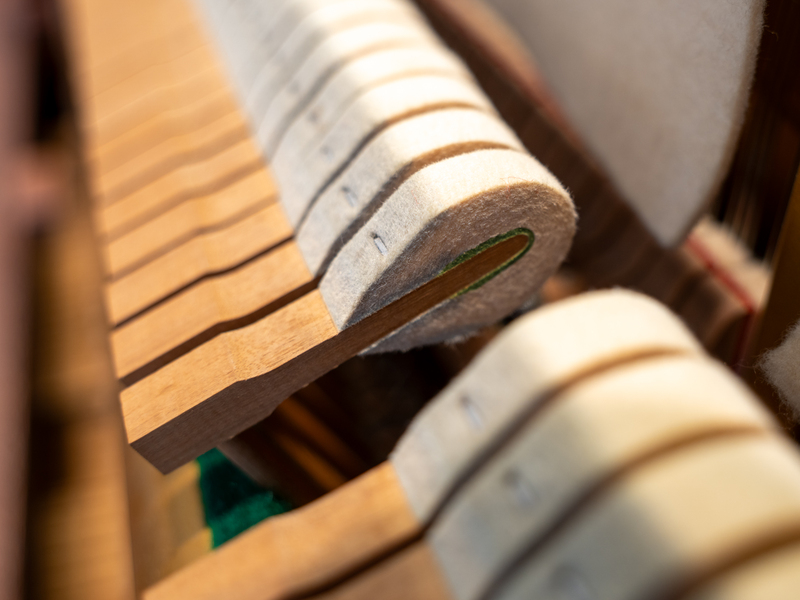 | アクション | オリジナル部品にて完全調整済み。ハンマーファイリング、ねじれ・遊びの調整、ダンパー調整、レットオフ調整等ピアノ整調をすべて行っております。フレンジコード、マフラーフェルトは新品に交換しています。 |
