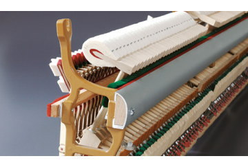 今までのアップライトピアノが、弦を弱く叩くことによって音を小さくしていたのに対して、このSSS(スリーエス)シリーズに使用されているアクションはグランドピアノと同様、叩く弦の数を減らして音量だけでなく音色を変える、という画期的な方法をとっているのです。
